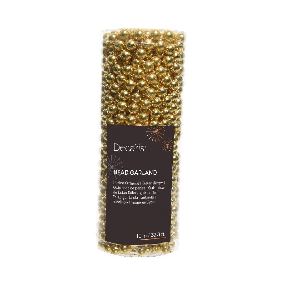 De kralenketting is maar liefst 10 meter lang en is gemaakt van duurzame materialen. De licht gouden kleur geeft een elegante uitstraling aan je kerstlook, en de glinsterende kralen vangen het licht op een betoverende manier.